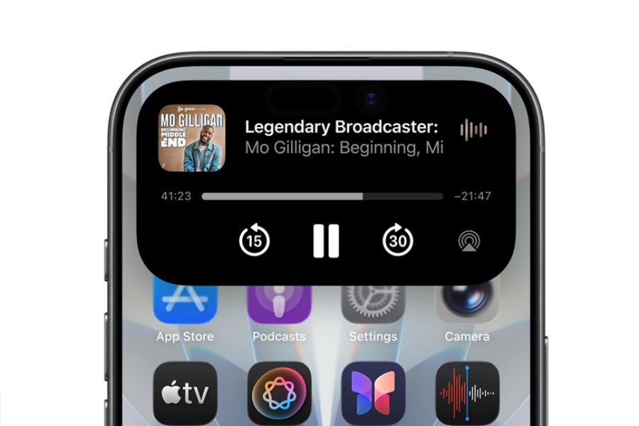 Listening to music or podcasts? Dynamic Island makes it easy: