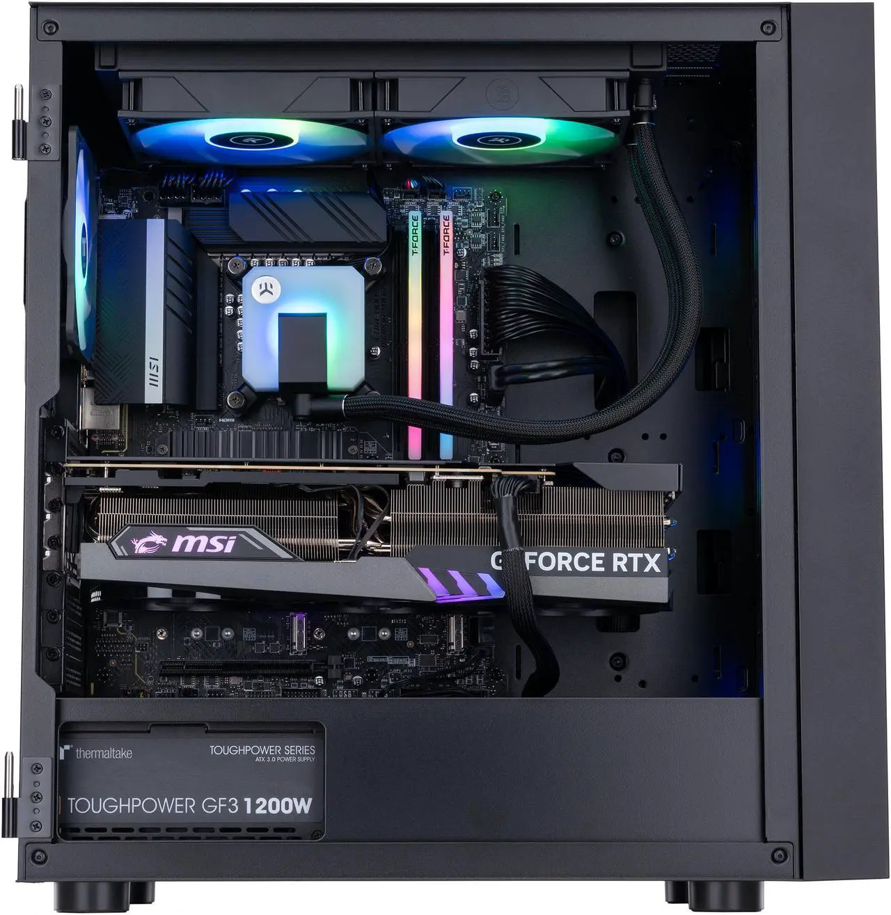 The Aqua and Ruby variants give you the freedom to choose the specs that work best for you. Aqua includes an Intel Core i9 CPU with 24 cores, 32 threads, and speeds up to 5.8 GHz, alongside an MSI GeForce RTX 4090 GPU. Ruby features an AMD Ryzen 9 CPU with 16 cores and 32 threads, and an NVIDIA GeForce RTX 5090 GPU. Whichever variant you choose, you can be assured that all that power will stay effortlessly cool with advanced cooling.
